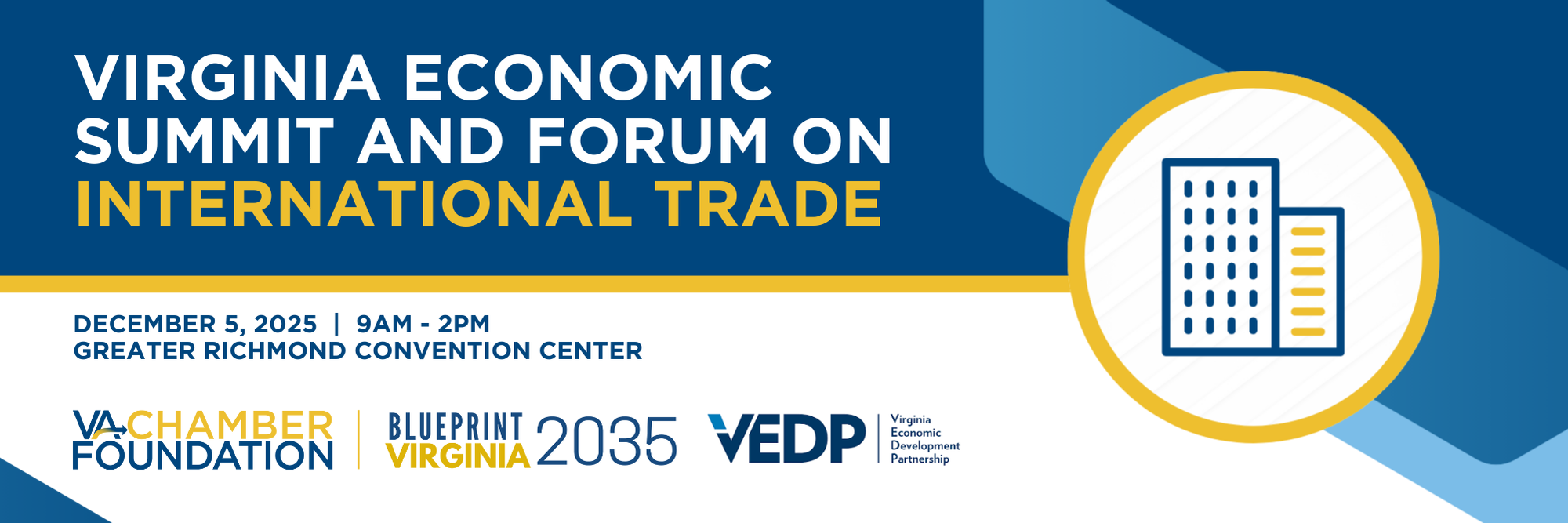 Co-hosted by the Virginia Chamber Foundation and The Virginia Economic Development Partnership, this year’s forum will join business leaders, elected officials, and economic experts to explore Virginia’s position in the global economy and how international trade strengthens long-term growth.