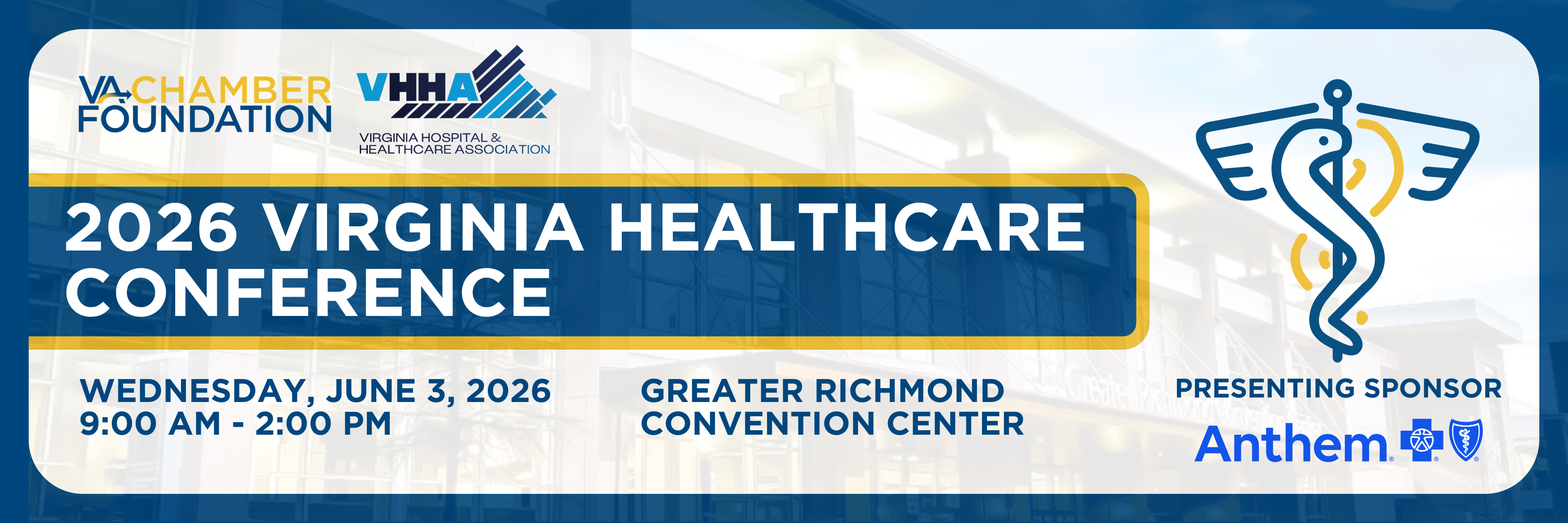 The Virginia Chamber Foundation and the Virginia Hospital & Healthcare Association are pleased to present the 2026 Virginia Healthcare Conference.