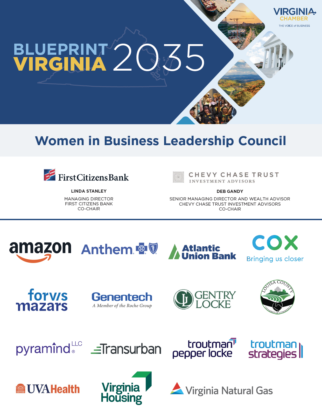 The Women in Business Leadership Council exists to empower and elevate women in the workforce by providing a platform for leadership development, networking, and advocacy. The council is made up of leaders from across industries who are committed to advancing gender equity, strengthening workplace inclusivity, and expanding opportunities for women in Virginia’s economy.