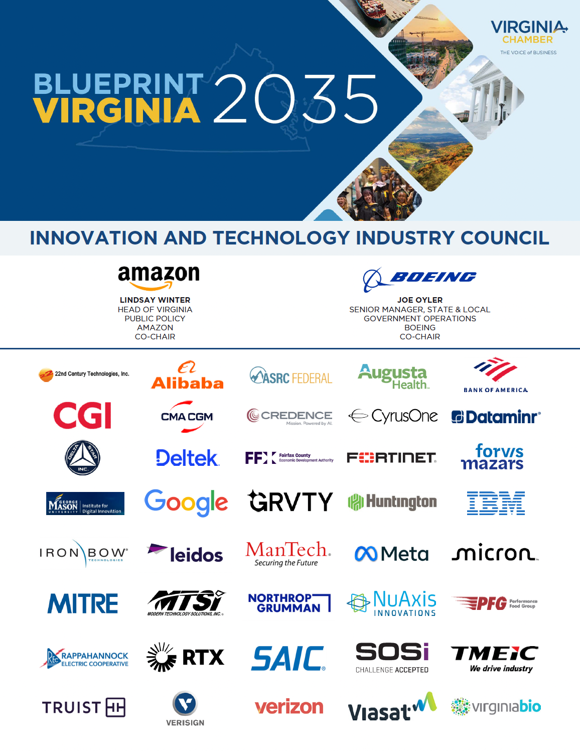 The Innovation and Technology Industry Council provides thought leadership and advises policy research aimed at strengthening Virginia’s technology and innovation ecosystem. Representing a diverse coalition of Virginia’s leading businesses, the Industry Council is working collaboratively to advance Virginia’s reputation as a global technology center and a destination for entrepreneurs and innovators.