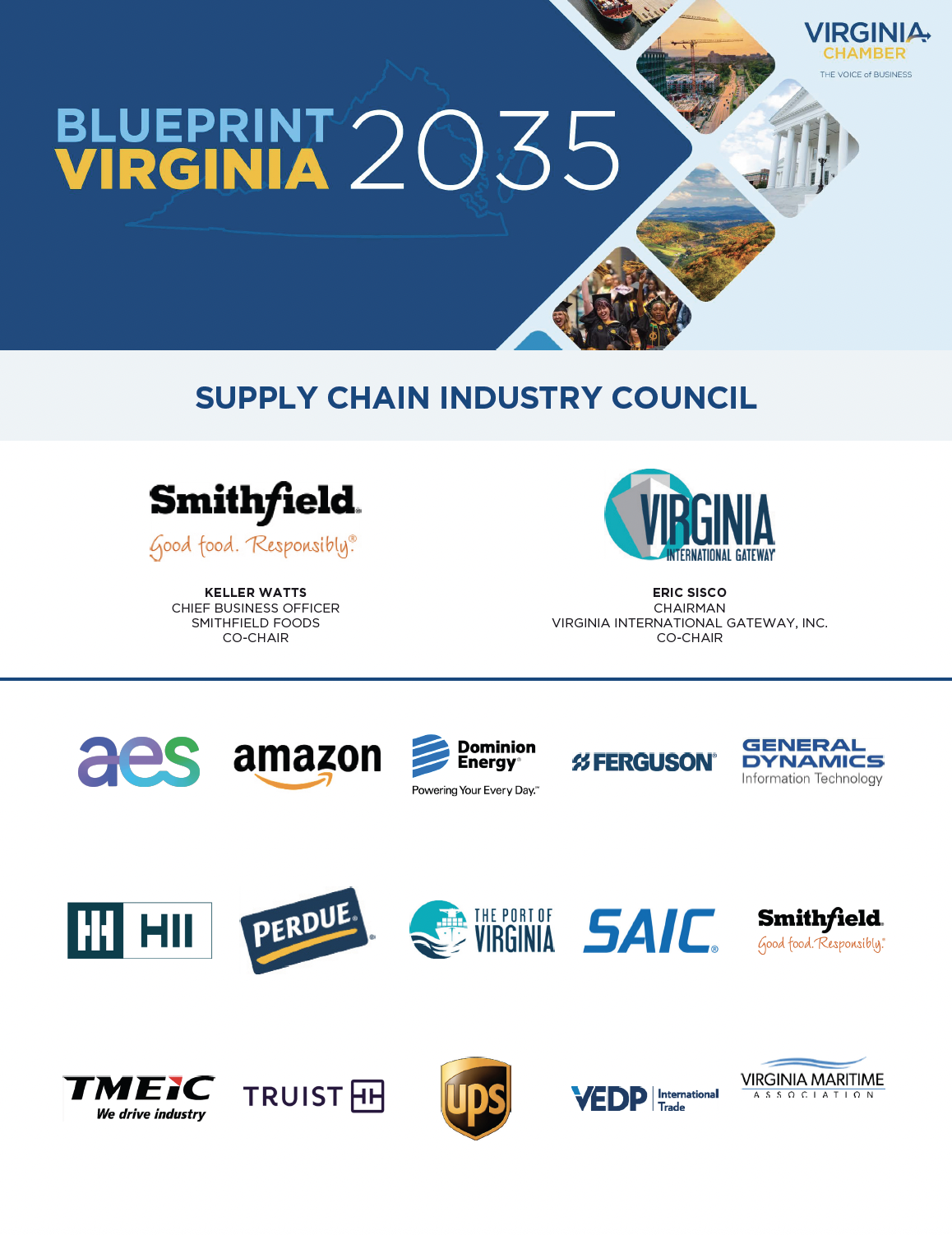 The Supply Chain and International Trade Industry Council is working to implement the policies and initiatives outlined in Blueprint Virginia 2035, the Virginia Chamber’s business plan for the Commonwealth. The council will prioritize specific infrastructure and business climate focus areas in the roadmap that are listed below: